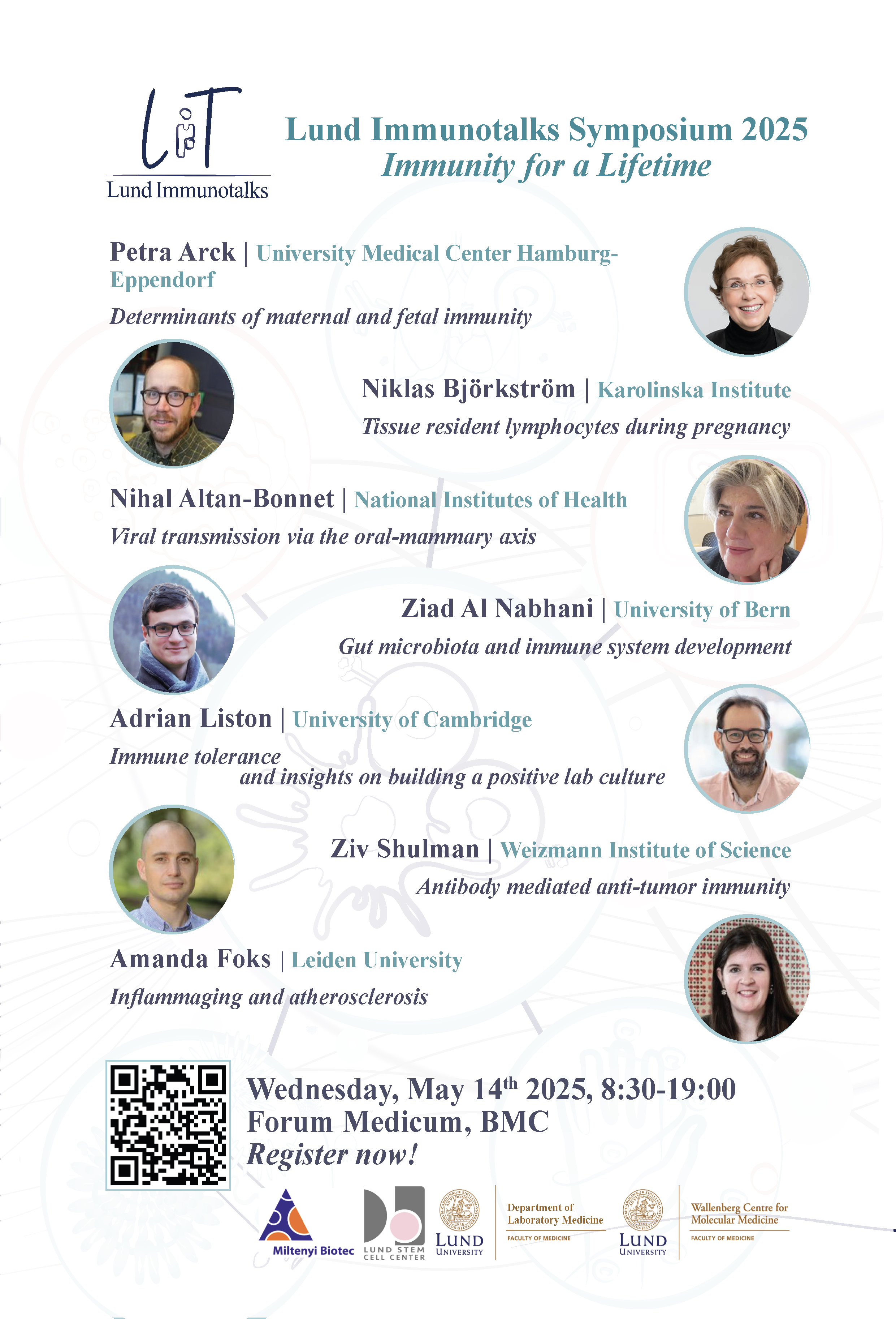 This year’s symposium “Immunity for a Lifetime” will bring together leading experts to explore the immune system across all stages of life, spanning research from pregnancy and early childhood to elderly health. The event will feature presentations from distinguished speakers, as well as opportunities for trainees to engage with experts over lunch and present their research through poster sessions. All are welcome to register here! Spots for physical attendance are limited and priority will be given to LU academic participants.