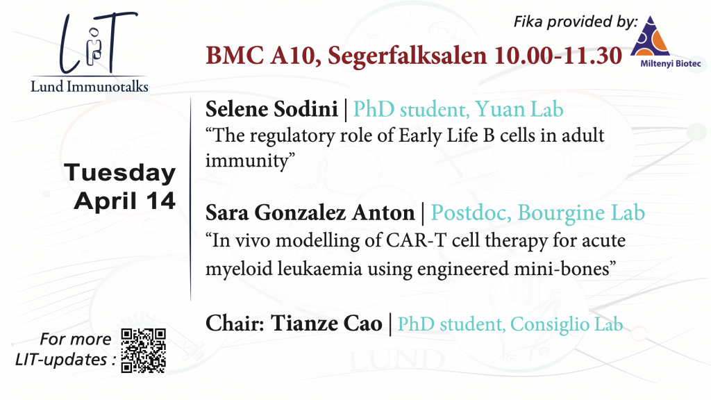 We are pleased to announce the 3rd Lund Immunotalks Symposium, which will take place on Wednesday, May 13th 2026, from 9:30 to 18:30 at the Auditorium in Medicon Village.